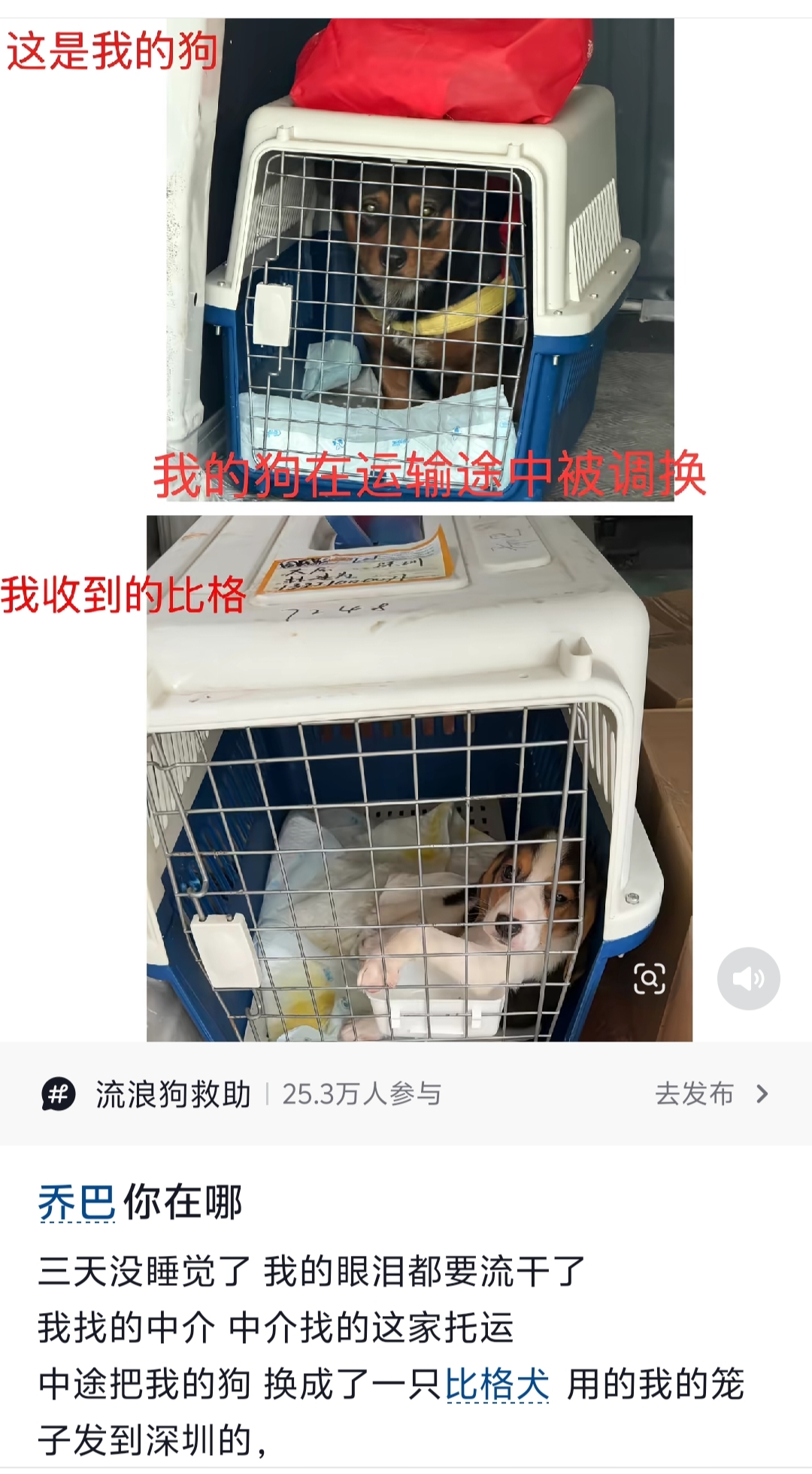 580元运费的牧羊犬到货后变成了小猎犬。狗主人:我报警了。他们只是在寻找一只狗,并计划起诉承包商。